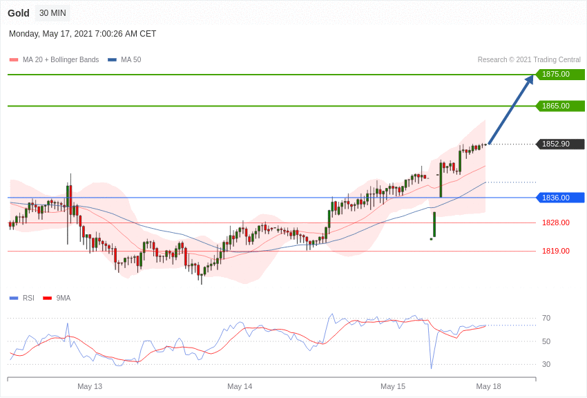 Zlato - Intradenní výhled 17.5.2021