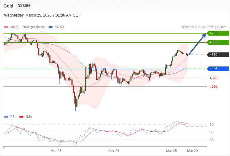 Zlato - Intradenní výhled 25.3.2026