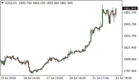 Nejvyšší denní hodnoty zlato dosáhlo krátce po zahájení obchodování, kdy jedna troyská unce stála až 1865,35 dolaru (zhruba 42.480 Kč). Později růst zmírnil a odpoledne SELČ růst činil méně než procento. Zlato se tak prodávalo mírně nad 1859 dolary.