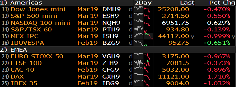 Na finanční trhy se dnes začíná pomalu vkrádat nervozita. Po včerejší nevýrazné seanci, kterou americké indexy zakončily mírně v červených číslech, se dnes ztráty prohlubují. V Evropě indexy klesají o více než procento a v USA futures na akciové indexy odepisují přibližně půl procenta.