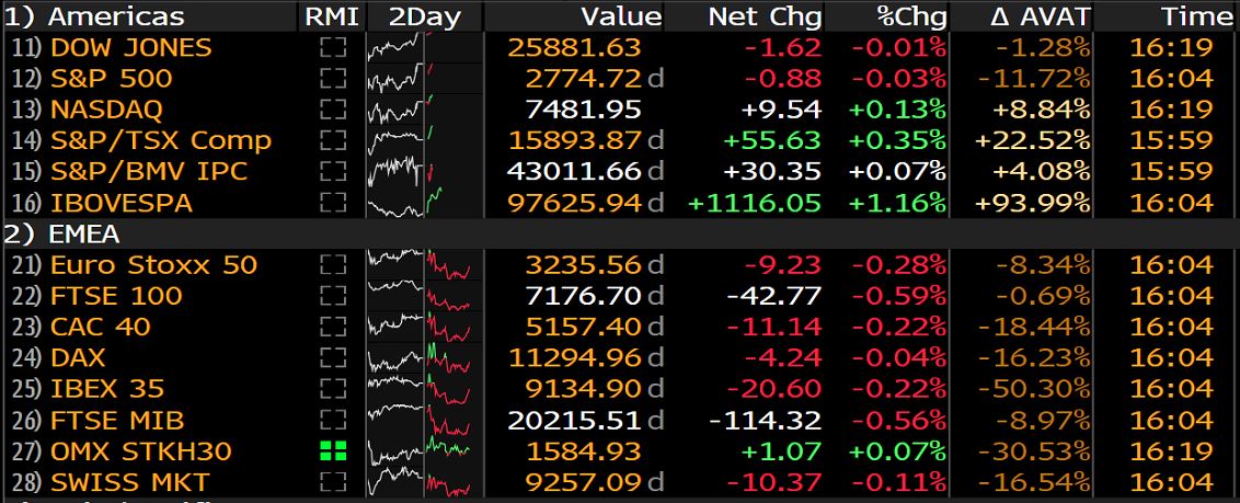 Dnes je volatilita na trhoch nižšia. Môže za to aj minimum dôležitých správ v ekonomickom kalendári. Akcie sa v čase písania tohto textu obchodujú jemne v červenom (v USA okolo nuly). Jednak trhy naďalej vstrebávajú víkendovú správu, že americké Ministerstvo obchodu odporučilo Bielemu domu zaviesť clá na dovoz európskych automobilov z titulu národnej bezpečnosti (odozva je však slabšia, aj z toho dôvodu, že Juncker vyhlásil, že Trump mu sľúbil, že tak nespraví. Tento scenár potvrdzuje aj to, že Trump je o tejto téme na twittri ticho). Druhým negatívnym faktorom sú dnešné slabšie kvartálne výsledky globálnych gigantov – britskej banky HSBC (ktorá pôsobí prevažne v Ázii) a najväčšej ťažobnej spoločnosti BHP Billiton. Vyzerá to, že obe tieto spoločnosti boli negatívne zasiahnuté spomalením Číny a okolitých ekonomík kvôli obchodnému sporu s USA.