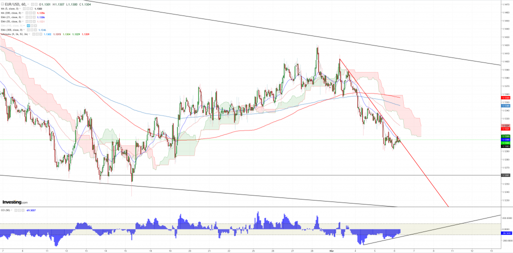 Euro dále oslabuje na pozadí očekávání investotů, že Evropská centrální banka ve čtvrtek bude signalizovat zpoždění ve zvyšování úrokových sazeb až do příštího roku a znovu zahájení poskytování dlouhodobých bankovních úvěrů. Evropská měna se obchoduje slabší o 0,05 procenta na 1.1304 (1 245 GMT) poté, co se dosáhla minima 1.1289, tedy nejnižší úrovně od od 19. února.