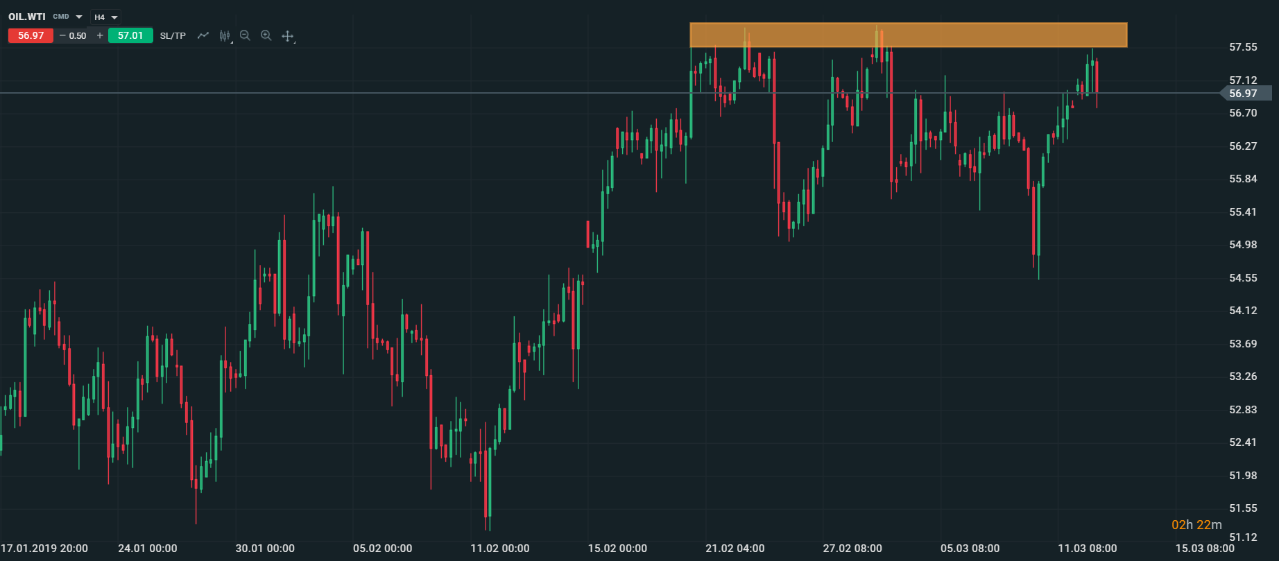 Cena ropy zaznamenala nárast vďaka optimizmu ohľadom predĺženia dohody o znížení ťažby ropy, ktorú avizovala Sadská Arábia. Krajiny OPEC vo februári vyprodukovali 30,5 milióna barelov denne, čo predstavuje pokles oproti januáru o 500 tis. barelov denne. Produkcia tak poklesla k najnižším úrovniam od marca 2015. Výraznejšiemu rastu cien čierneho zlata bráni zníženie predikcie hospodárskeho rastu a inflácie na nasledujúce roky Európskou centrálnou bankou. To podporilo pokračujúce obavy ohľadom spomaľovania globálnej ekonomiky. Znižovanie globálneho dopytu vďaka ochladzovaniu ekonomickej aktivity prispieva ku vyrovnaniu rozdielu medzi dopytom a ponukou na trhu. Ropa WTI dnes testovala úroveň rezistencie v oblasti 57,50 – 57,80 USD/bbl. V prípade prerazenia, je možný rast k úrovni 60 USD/bbl.