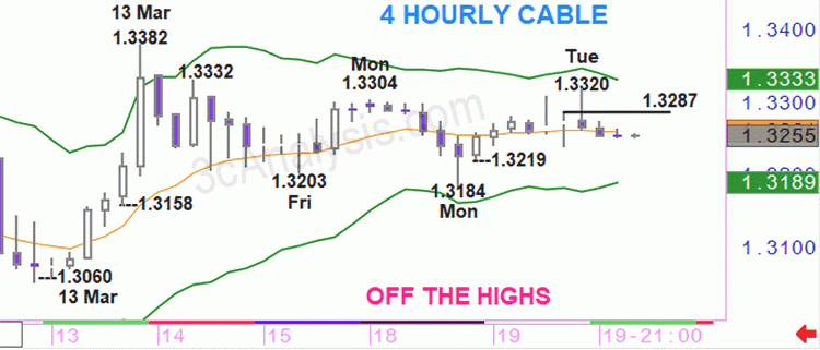 Ani jeden z našich predajných výhľadov nebol včera splnený, pretože pár naďalej kolísal okolo oblasti kĺzavého priemeru. V skutočnosti sa rozsah obchodovania zúžil a menší čistý pohyb tiež poukazuje na slabosť okamžitých signálov sentimentu. Ale napriek tejto skutočnosti, povzbudzujúcej k opatrnosti, deň sa skončil predajným záujmom, ktorý stačil na zanechanie negatívneho sentimentu pre vnútrodenné štúdie. Takže náš dnešný výhľad predpokladá predaj pri otvorení trhu, ale s ponechaním priestoru na predaj pri raste ku 1.3094, 13 dennému kĺzavému priemeru. Riziko predpokladáme v raste nad 1.3123, maximum z 5. apríla. Cieľ predpokladáme v poklese ku 1.3049, minimum počas obchodovania v Ázii, 1.3020 alebo dokonca 1.2977, dvojtýždenné minimum. -