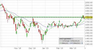 Také on-line zásilková společnost Amazon byla na konci loňského roku řádně pod útokem a cena akcií spadla až o 30 %. První známky oživení jsme zaznamenali v lednu, ale pak býci o Amazon ztratili zájem. Až během posledních dvou týdnů se cena akcie začala znovu zvyšovat a prorazila silný odpor.
