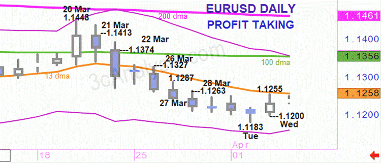 V súlade s naším včerajšim býčím výhľadom, nerozhodná DOJI sviečková formácia v utorok bola nasledovaná výraznejším vyberaním ziskov. Prírastky neboli rozsiahle aj napriek najlepšej výkonnosti za 10 obchodných dní. Je to však zlyhanie na 13 dennom kĺzavom priemere, ktoré naznačuje, že rast bol limitovaný. Menšie zisky počas obchodnej seansy v Ázii však naznačujú opatrnosť, a preto náš výhľad predpokladá opatrný predaj pri otvorení trhu, ale s ponechaním priestoru na predaj rastu ku 1.1263, maximum 28. marca. Riziko predpokladáme v raste nad 1.1295. Cieľ predpokladáme v poklese ku 1.1215. Prieraz tejto úrovne zhoršuje sentiment ku 1.1200, základňa v stredu a 1.1176, minimum v marci.