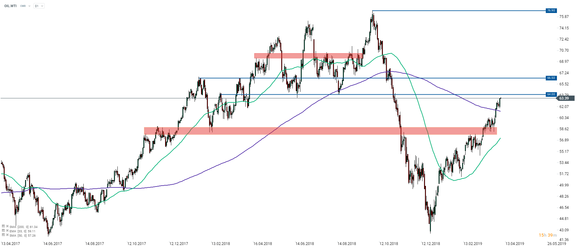 Cena ropy v pátek začala výrazně růst a dostala se na nová letošní maxima. Ropa WTI (OIL.WTI) se nachází lehce pod hranicí 64 USD, kde se naposledy pohybovala v roce 2018. Ropa letos vyrostla už o 50 %, což samozřejmě výrazně zvyšuje riziko náhlé korekce. Zdroj: xStation5