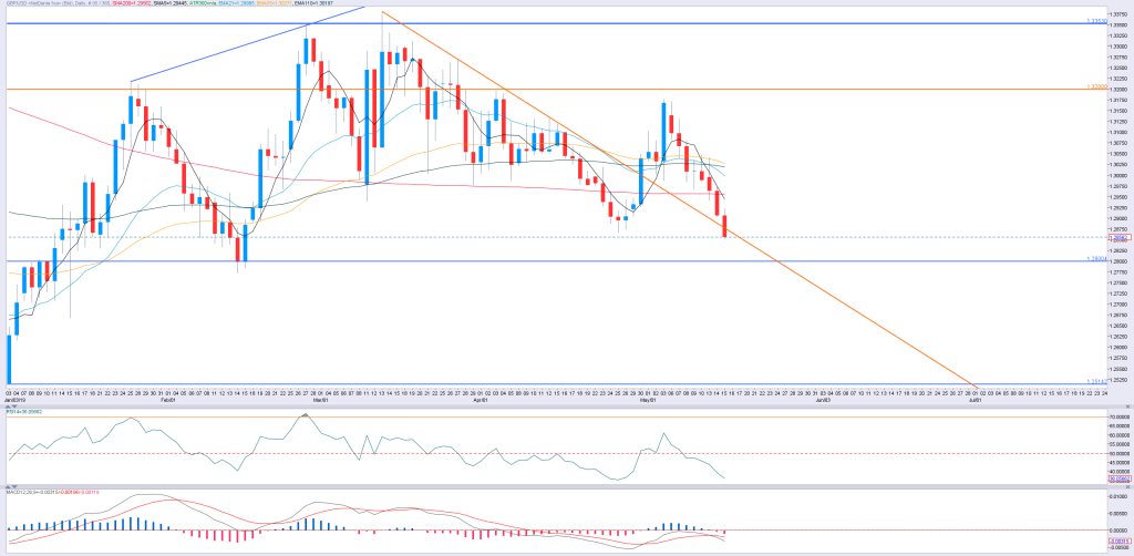 Sterling se zastavil po pádu na téměř 3-týdenní minimum v předchozím obchodování poté, co mluvčí PM May uvedl, že plánuje předložit svou třikrát odmítnutou dohodu Brexit parlamentu ke schválení. Mělo by se tak stát v týdnu začínajícím 3. červnem, aby se pokusila zajistit dohodu dříve, než zákonodárci odjedou na letní dovolenou.