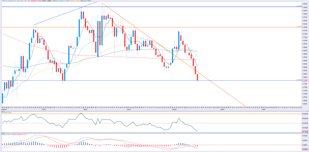 Pár se aktuálně obchoduje -0,63 procenta na 1,2799 (1310 GMT), když dosáhl úrovně 1,2811 v dřívějším obchodování. Aktuálně je GBP nejnižší od 15. února.