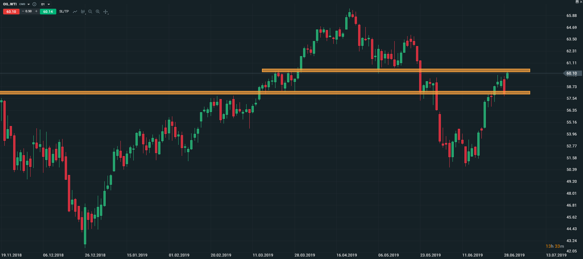 Minulý týždeň sa udiali dve zásadné udalosti, ktoré budú v najbližších týždňoch vytvárať tlak na rast ceny ropy. Prvou bolo stretnutie amerického prezidenta Donalda Trumpa s čínskych prezidentom Xi Jinpingom na samite krajín G20 v Japonsku. Obe hlavy štátov sa dohodli, že budú pokračovať v rokovaniach ohľadom dosiahnutia obchodnej dohody. Trump odložil zavedenie dodatočných ciel na dovoz čínskych produktov v ročnom objeme vo výške 300 miliárd dolárov. Čínsky prezident prisľúbil, že Čína sa bude snažiť znižovať obchodný prebytok s USA a to tak, že bude nakupovať veľké množstvá poľnohospodárskych produktov. Trump taktiež povolil americkým firmám spolupracovať s čínskou spoločnosťou Huawei, ktorú pred niekoľkými týždňami zaradil na tzv. „blacklist“. Najdôležitejšie ale je, že trhy vo všeobecnosti neočakávali takýto pozitívny scenár stretnutia medzi Trumpom a Xi, pretože v posledných týždňoch bola situácia medzi oboma krajinami veľmi napätá, takže tento výsledok je veľmi pozitívny pre trhy. V prípade dosiahnutia obchodnej dohody, klesá riziko spomaľovania globálneho hospodárskeho rastu, pretože dohoda by mala viesť k odstráneniu ciel medzi oboma krajinami, čo povedie k zvýšeniu kúpyschopnosti obyvateľstva, a teda krajiny budú dovážať a spotrebovávať viac, čo sa prejaví aj na raste dopytu po rope, a teda aj na raste jej ceny.