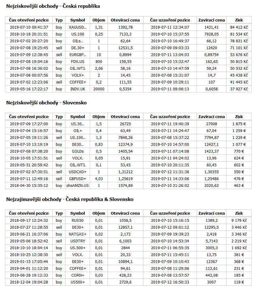 Nejlepší reálné obchody XTB minulého týdne + nejlepší obchody na páru EUR/CZK