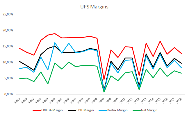 Hospodářské výsledky za 2Q/2019 byly nad očekávání dobré. Společnost vykázala vyšší tržby i zisky než ve stejném období loni. EBIT vzrostl téměř o 21 % y/y i přes silnější americký dolar. Tržby dosáhly na 18,048 miliardy dolarů, což znamenalo meziroční růst o 3,4 %. Operativní zisk vzrostl ve všech segmentech – domácí USA, mezinárodní i v nabídkovém řetězci & dopravě. Navíc poslední kvartál byl nejvíce ziskový ve 111leté historii společnosti. Vedení společnosti vychvaluje transformační proces, který se postupně začíná vyplácet. Připomeňme si, že UPS plánuje automatizovat 80 % své sítě do konce roku 2019.