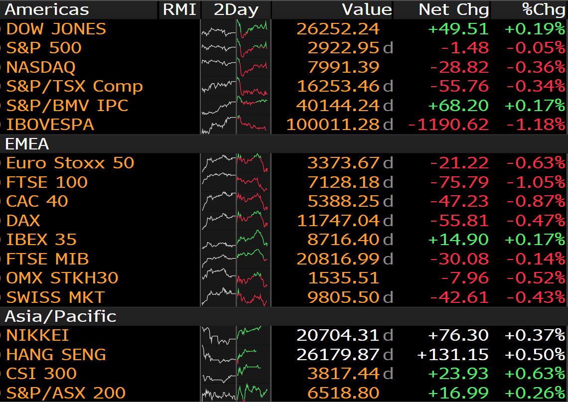Poslední vývoj globálních indexů. Zdroj: Bloomberg