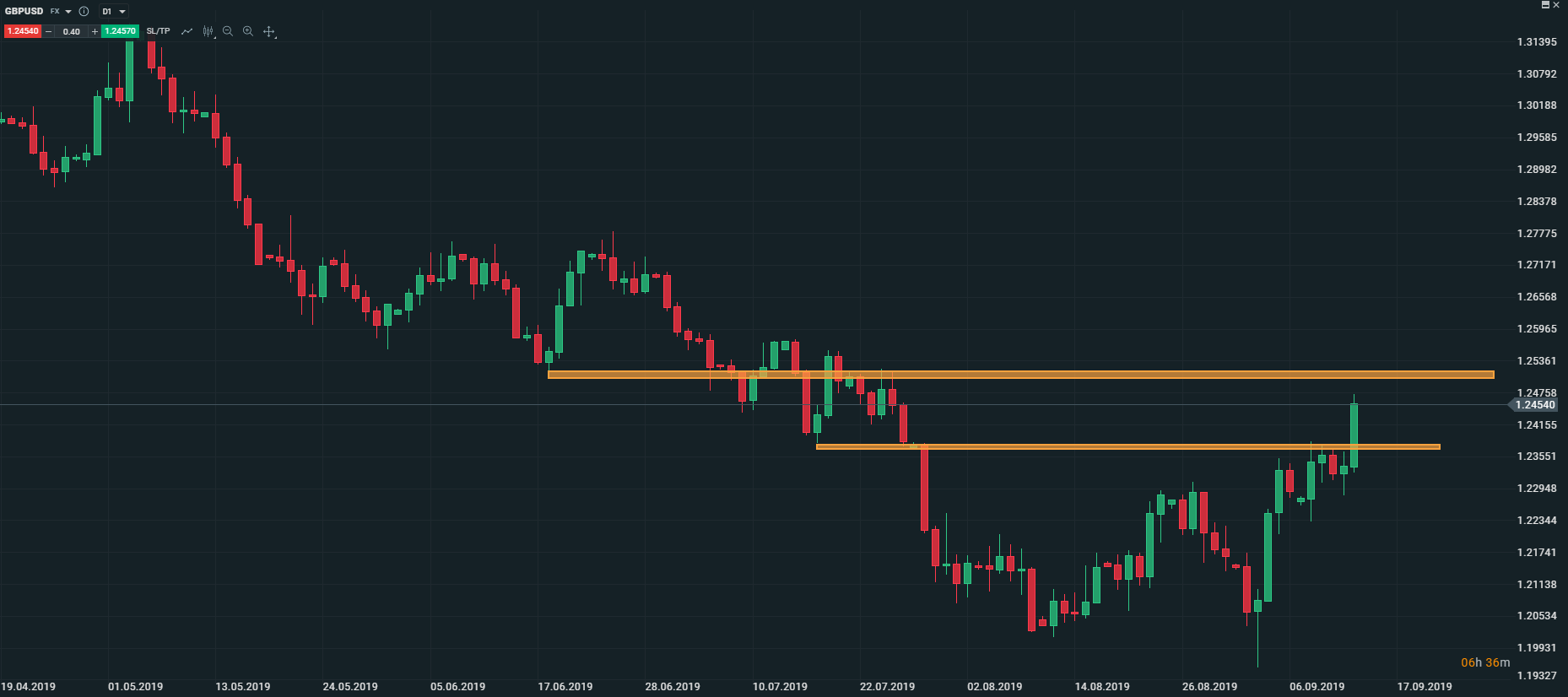 Menový pár GBPUSD prekonal kľúčovú rezistenciu na úrovni 1,24, čím sa otvorila cesta pre rast k úrovni 1,25. Zdroj: xStation5