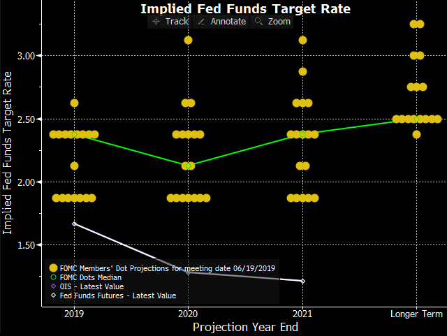 Poslední tečkový graf byl vydán v červnu a v tu dobu nejvíce holubičí členové FOMC (7 teček) ukazovali na 2 snížení sazeb v tomto roce - to je výsledek, kterého bychom se měli dočkat dnes. Otázkou je, o kolik více se členové FOMC stali od té doby holubicemi. Některé tečky by se měly pohnout ještě níže, protože někteří více radikální členové chtějí více uvolňování (Bullard, Kashkari). Celkem 2 nebo 3 tečky, které by napovídaly dalšímu uvolňování v tomto roce, však trhy neoslní. To by se mohlo stát až v případě pěti nebo více teček, které by směřovaly k nižším úrokům, nicméně tento scénář nevypadá příliš pravděpodobně. Už jen z toho důvodu, že by popřel guvernérovo vyjádření o snížení sazeb v rámci poloviny ekonomického cyklu (mid-term adjustment).