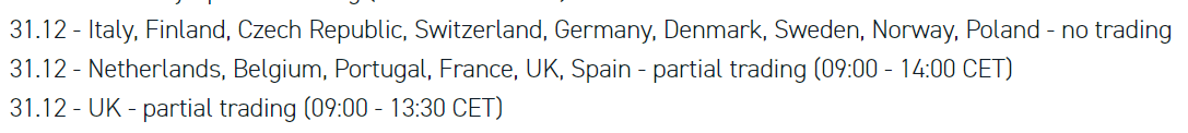 Obchodování na Silvestra má lehčí rozvrh. Mnoho evropských trhů zůstává zavřených a další nabídnou pouze zkrácené obchodování. Ovšem Wall Street nabízí plnou obchodní seanci a také budeme svědky některých zajímavých makrodat z USA včetně: