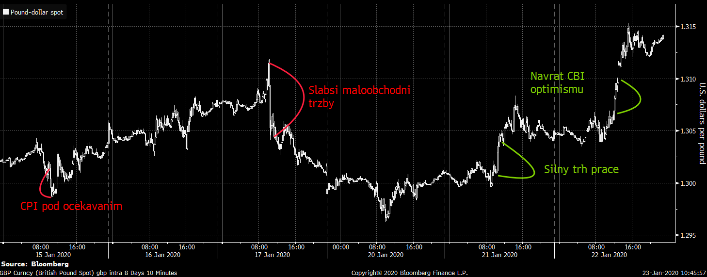 Nejprve libra dvakrát citlivě reagovala na slabší výsledky CPI a maloobchodní tržby, poté reagovala naopak pozitivně na čísla z trhu právě na včera zveřejněný CBI index.