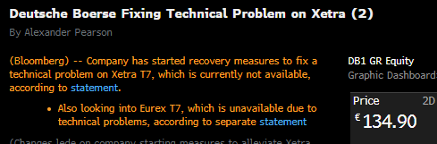 Obchodování DAXu bylo zastaveno kvůli technickým problémům. Zdroj: Bloomberg