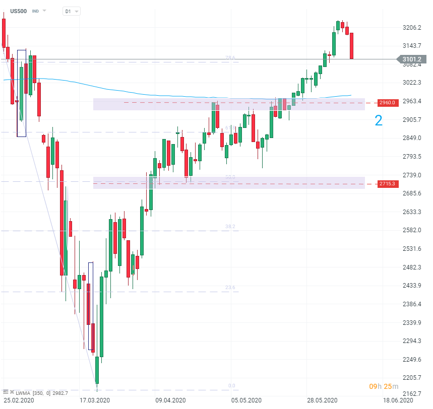 US500 je ešte ďaleko od najbližšej podpory na úrovni 2960 bodov. Zdroj: xStation5