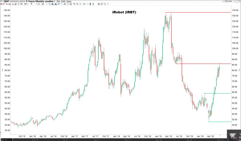 Graf akcie iRobot. Zdroj: LYNX Trading.