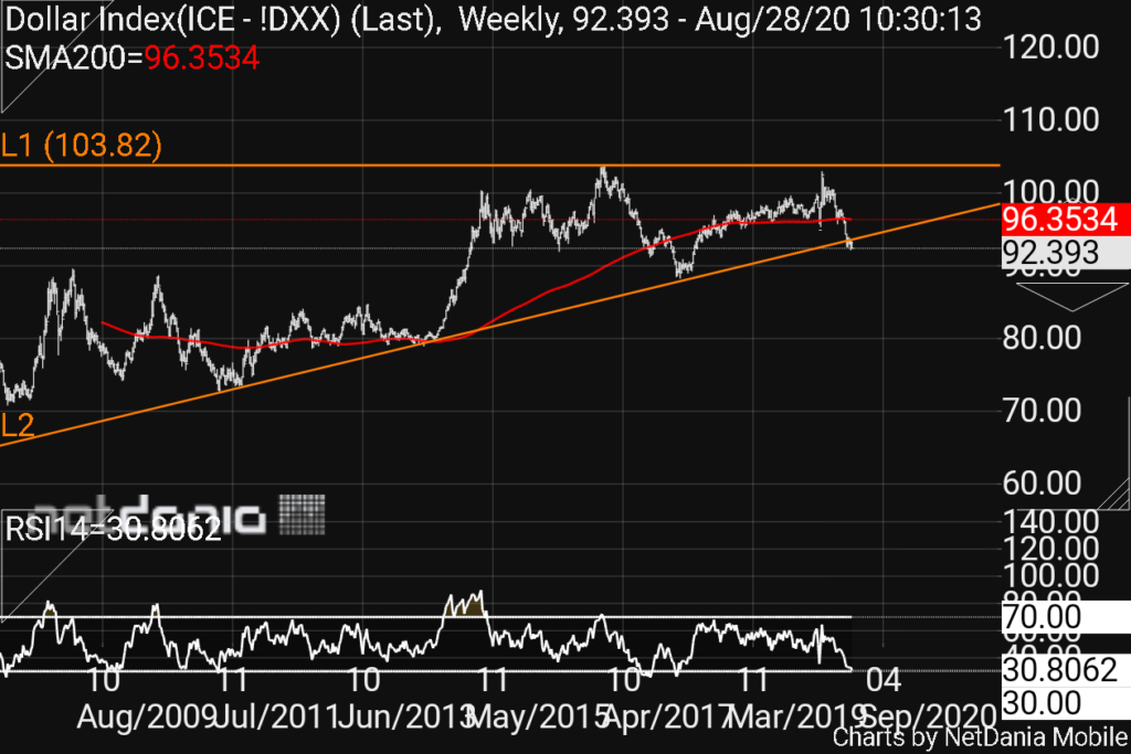 Dolarový index oslabil po představení nové agresivní strategie Federálního rezervního systému ke zvýšení zaměstnanosti a zvýšené tolerance k vyšší inflaci. Komentář J. Powella k aktuální ekonomické situaci a k možným východiskům byly trhem široce očekávané, ale někteří obchodníci byli zklamáni, že Fed neodhalil více podrobností o tom, jak bude nový rámec fungovat, ani neposkytnul vodítka k tomu, co bude dělat na svém příštím politickém zasedání. Dolar se vůči koši měn obchodoval na 92,45 (08:28 GMT) poté, co se ve čtvrtek dotkl minima 92,42 – nejnižší hodnoty od 19. srpna.