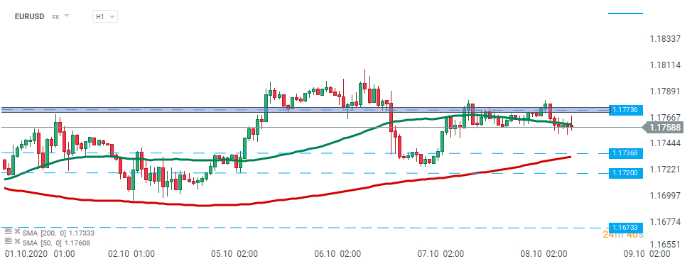 EURUSD - pár prorazil pod úroveň 50 SMA (zelená čára) po dnešním zveřejnění makrodat. Mohl by směřovat k úrovni supportu na 1,1736. Zdroj: xStation5 Klíčová slova: USA | Finanční krize | XTB | EURUSD | Krize | Očekávání | Očekávání trhu | SMA | Breaking | xStation5 | BREAKING | Pandemie | Pokračování poklesu | Žádosti o podporu | Dávky v nezaměstnanosti | Statistiky | Žádosti o podporu v USA |