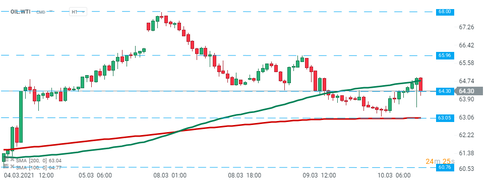 Ropa WTI (OIL.WTI) klesla po zverejnení dnešnej správy EIA a testuje úroveň podpory na hodnote 64,30 USD. Zdroj: xStation5
