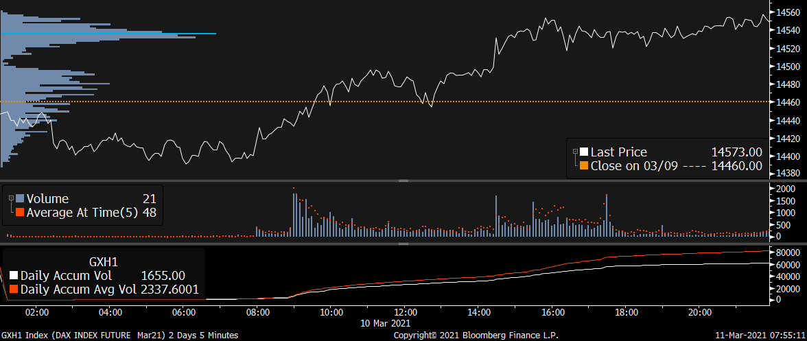 Největší obchody podle objemu na DAX (aktivní future kontrakt)