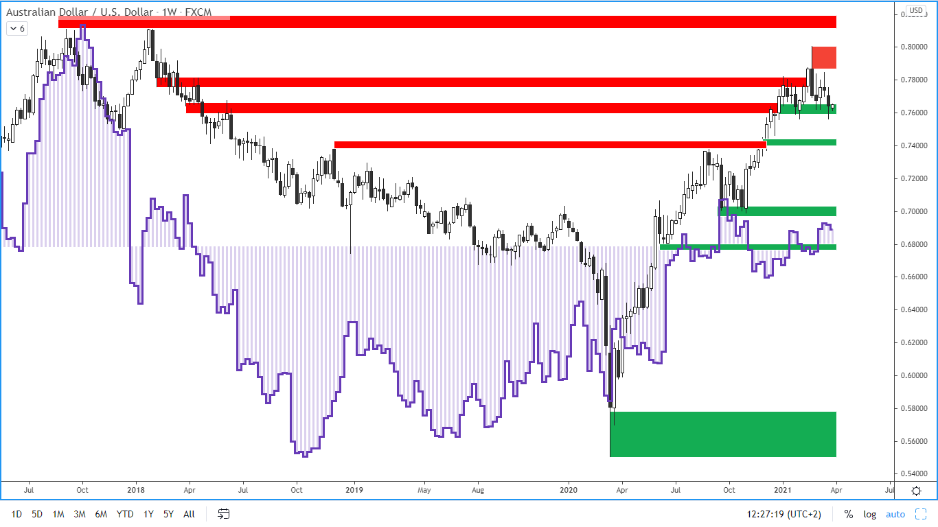 Nejbližší dlouhodobý support: 0.7600-0.7650