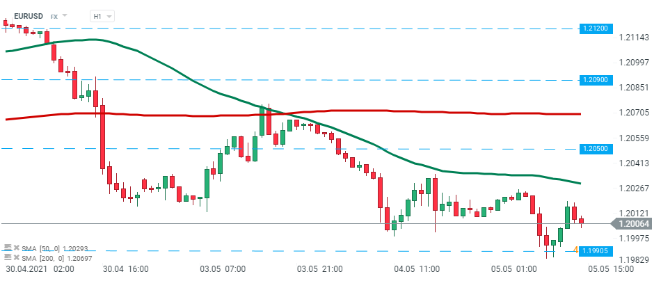 EURUSD zaznamenal relatívne malú reakciu na dnešné zverejnenie údajov. Najobľúbenejší menový pár sa naďalej obchodoval okolo úrovne 1,20. Zdroj: xStation5