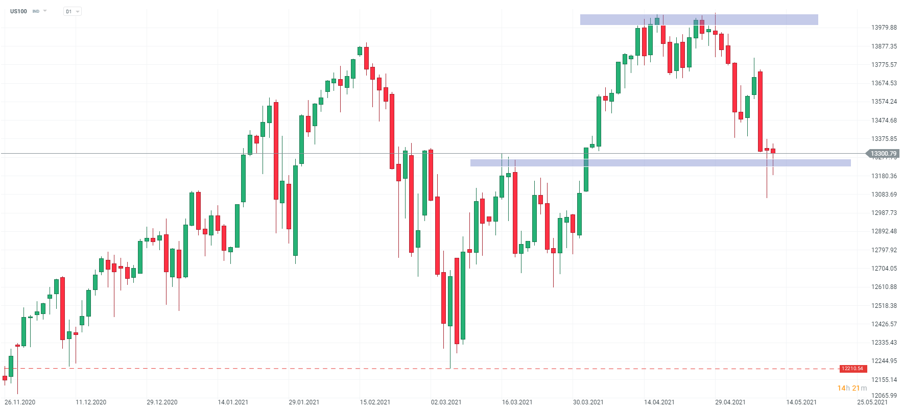 Index spotřebitelských cen (CPI) v USA v dubnu zaznamenal meziroční nárůst o 4,2 %. Naposledy bylo takto vysoké číslo reportováno v září 2008. Jádrová inflace se pak vyhoupla z 1,6 % a rovných 3 %. Zveřejněný fundament vedl k výprodejům na amerických akciových trzích, jelikož investoři se začali obávat, že Fed bude muset kvůli zvýšené inflaci utahovat rozvolněnou monetární politiku mnohem dříve, než se doposud očekávalo. -