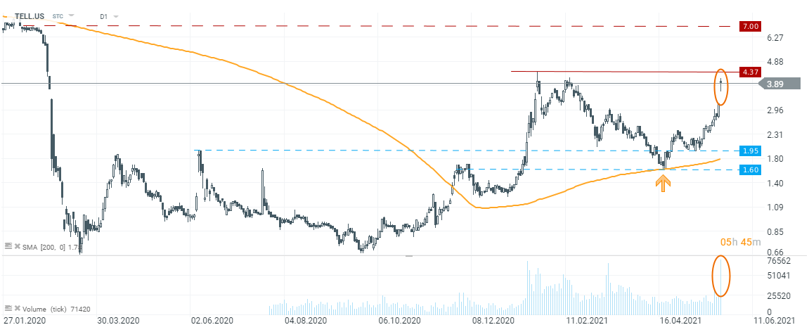 Akcie spoločnosti Tellurian zaznamenali po oznámení tejto správy nárast o viac ako 20%. Cena dosiahla februárové maximá, ale vnútrodenný vrchol od januára (4,37 USD) je stále nad súčasnou úrovňou. Cena akcií je tiež hlboko pod úrovňou pred pandémiou.
