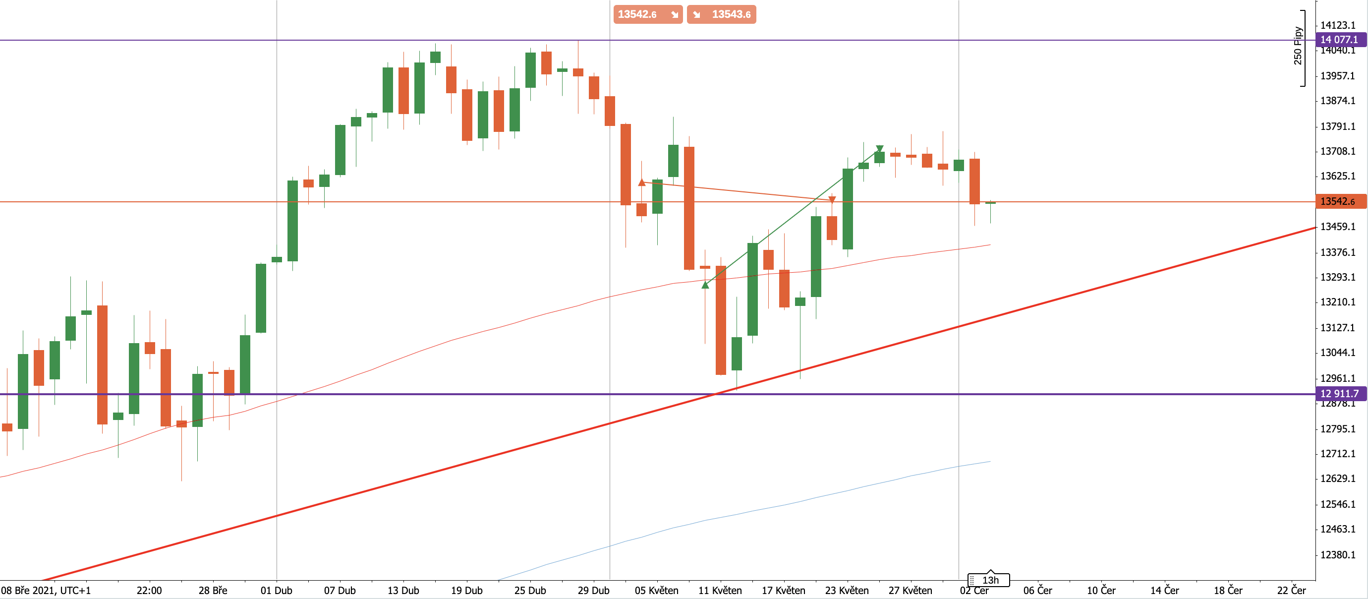 Zatímco většina akciových indexů včera pokračovala v pohybu, Nasdaq jako jeden z mála uzavřel níže, což bylo výsledkem negativní nálady na technologických titulech. Jinak trhy poměrně trpělivě vyčkávají na odpolední projev Jerome Powella, kde může zaznít něco zajímavějšího k inflaci a odpoledne bude také zveřejněn report z amerického trhu práce. Ten může určit směr monetární politiky FEDu na další měsíce a určitě se projev do rétoriky červnového zasedání amerického FEDu.