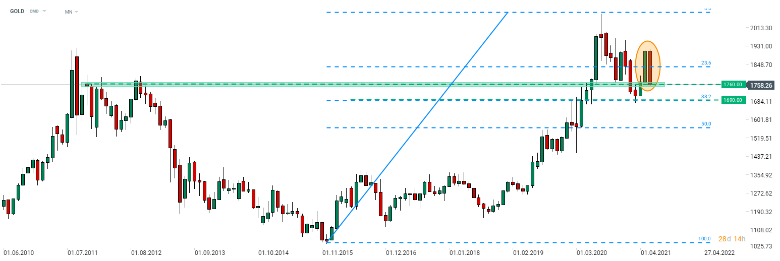 GOLD vytvoril v mesačnom časovom rozmedzí medvedí pohlcujúci vzor. Zdroj: xStation5