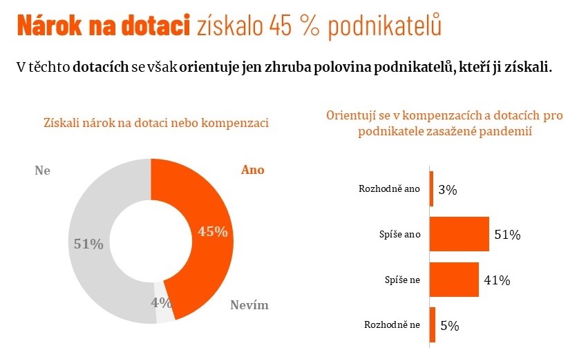 Podnikatelé mohli v průběhu pandemie využít nejrůznější bonusy a kompenzace. Přestože nárok na některou z dotací mělo až 45 % podnikatelů, pouze polovina z nich se dokázala v problematice zorientovat.