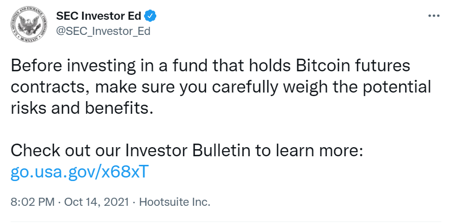 Zdá sa, že spomínanú správu potvrdzuje aj tento včerajší tweet od SEC. Zdroj: SEC Investor Ed Twitter