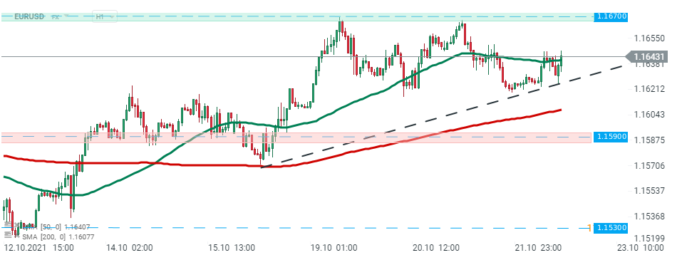 EURUSD zaznamenal relatívne malú reakciu na dnešné zverejnenia údajov. Najpopulárnejší menový pár pokračoval v obchodovaní okolo úrovne 1,1640. Zdroj: xStation5