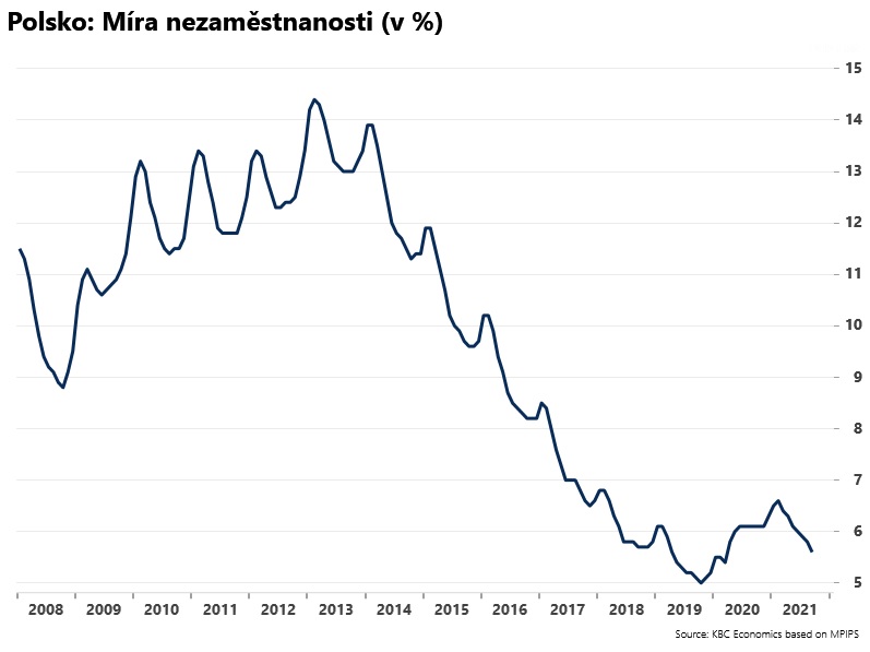 Nezaměstnanost v Polsku podle očekávání