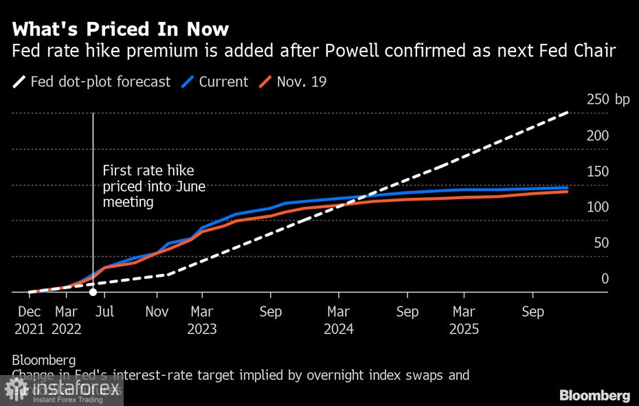 Páteční zpráva nepochybně rozhodne o změnách v současné měnové politice Federálního rezervního systému. Ten se již na tuto skutečnost odvolal, aby zmírnil faktor šoku, když oznámil urychlení procesu snižování a předpokládá několikanásobné zvýšení úrokových sazeb v příštím roce. Zasedání FOMC skončí 15. prosince a v této fázi se účastníci trhu seznámí s nejnovějšími prognózami zvyšování úrokových sazeb v porovnání s bodovým grafem. Analytici naznačují, že v příštím roce by s největší pravděpodobností mohlo dojít k většímu než trojímu zvýšení sazeb.