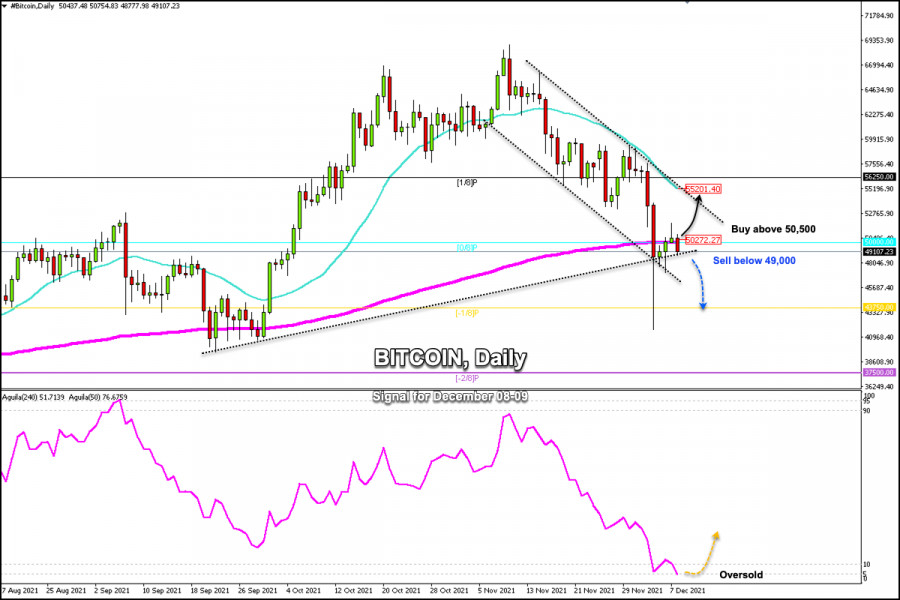 Obchodní signál pro BITCOIN na 8.–9. prosince 2021: nakupujte nad úrovní 50 500 USD (200 EMA)