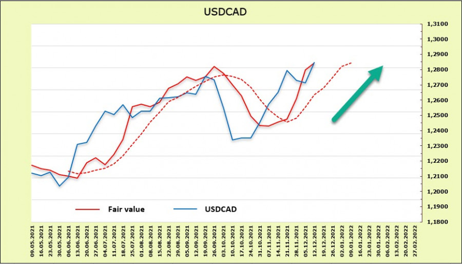 Podle zprávy CFTC čistá krátká pozice v kanadském dolaru zůstává, ale mírně se snížila na -740 mil., což není příliš silná převaha. Odhadovaná cena se vyrovnala spotové ceně a dynamika je býčí, takže šance na další růst USD/CAD považujeme za výhodnější.