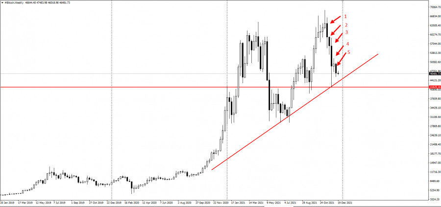 BTC klesl o 4,3 % na 46 501 USD, což je asi o 32 % méně od doby, kdy 10. 11. dosáhl rekordu téměř 69 000 USD. Celkově však letos vzrostl o 60 %.