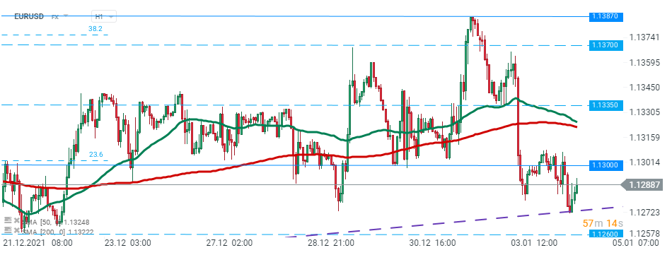 EUR/USD se odrazil od rostoucí trendové čáry a směřuje k hlavní lokální rezistenci na úrovni 1,1300. Zdroj: xStation5