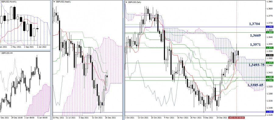 Býci a medvědi se každý den utkávají s přibližně stejnou silou. Nejistota se ve výsledku přesunula do týdenního časového rámce a euro je dlouhodobě navázáno na zónu atrakce a vlivu měsíční úrovně 1,1290. Úrovně denního mrtvého kříže Ichimoku dnes klesly až k aktuální lokaci páru. Možná, že odstranění kříže (1,1337–1,1373) býkům pomůže opustit současnou zónu atrakce a konsolidace. Co se týká medvědů, je nejbližším významným pivotním bodem minimální extrém (1,1186). -