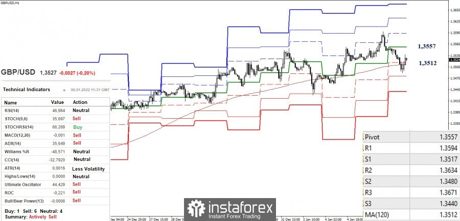 Pár je v menších časových rámcích v zóně korekčního poklesu a testuje nejdůležitější úroveň supportu, totiž týdenní dlouhodobý trend (1,3512). Konsolidace pod ní by mohla změnit aktuální rovnováhu sil a podpořit silnější medvědí sentiment. V tom případě se ze supportu klasických pivotních úrovní (1,3480–1,3440) stanou pivotní body poklesu. Naopak, odraz od dosaženého supportu a návrat centrální pivotní úrovně (1,3557) může býkům pomoci obnovit pozice, dokončit pokles a vytvořit nové vyhlídky na růst, tj. pokračovat v rostoucím trendu a dosáhnout maxima 1,3598.