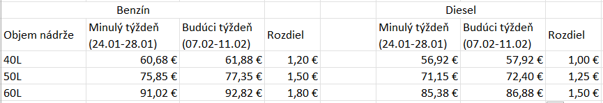 Analytik spoločnosti XTB, Lukáš Lipovský, na základe vývoja cien PHM v Rotterdame očakáva, že priemerné ceny benzínu a dieslu na Slovensku by mali v nasledujúcich dvoch až troch týždňoch zaznamenať nárast od troch do šiestich centov za liter oproti priemerným cenám z predchádzajúceho týždňa. Priemerné ceny benzínu na Slovensku zaznamenali behom minulého týždňa nárast o 1,8 centu za liter, pričom priemerné ceny dieslu zaznamenali nárast o 1,9 centu za liter oproti priemerným cenám z predchádzajúceho týždňa.