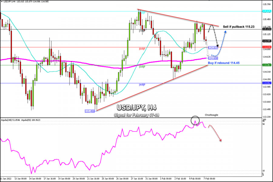 Obchodní signály pro pár USD/JPY na 7.–8. února 2022: prodávejte pod úrovní 115,23 (7/8)