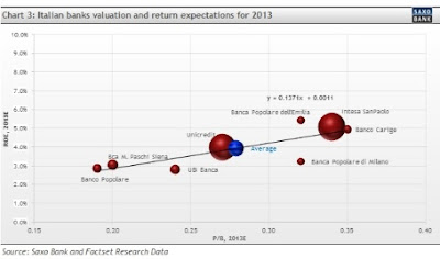 Chart 3: Italian banks valuation and return expectations for 2013 | Graf č. 3: Ocenění italských bank a očekávané ROE pro rok 2013 |