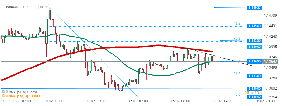 EURUSD pokračuje v pohybu okolo úrovně 1,1365. Zdroj: xStation5