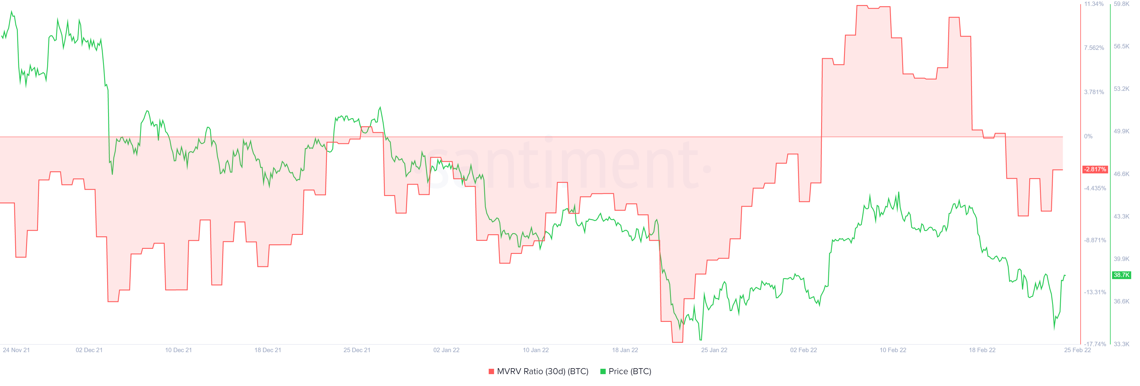 - Model 30-dňovej trhovej hodnoty k realizovanej hodnote (MVRV), ktorý ukazuje priemerný zisk/stratu investorov, ktorí nakúpili BTC za posledný mesiac, vzrástol z -6,8 % na -2,8 % za posledné tri dni, čo je ďalší býčí signál.